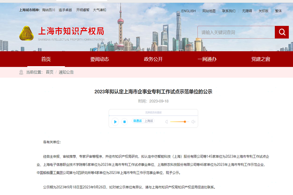 瑞浦青创喜获2023年上海市专利工作试点单位认定