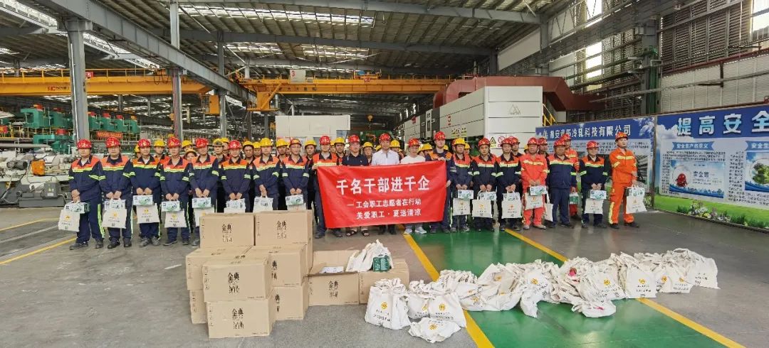 近日,持续的高温给奋战在一线的员工们带来了严峻的考验,他们坚守在不锈钢生产岗位,挥洒汗水,也牵动着大家的心。7月26日,福安市总工会结合“千名干部进千企”活动部署,赴青拓集团有限公司开展了“关爱职工 夏送清凉”慰问活动。福安市总工会党组书记、常务副主席苏振铃,福安市总工会党组成员、副主席王向东带领慰问小组及慰问物资,在青拓集团党委书记、行政总经理钟盛江及福安青拓冷轧科技有限公司副总经理兰亮的陪同下,为坚守在一线的员工送上一份清凉。