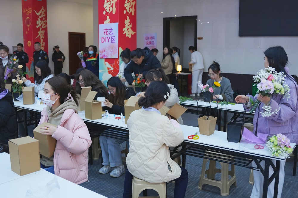 花艺、手作DIY区域弥漫着艺术气息。女员工们精心挑选花束、材料,将自然之美定格;咖啡品鉴区里,醇香四溢,专业咖啡师现场教授冲泡技巧,大家细品咖啡、在慢节奏中感受片刻闲适。