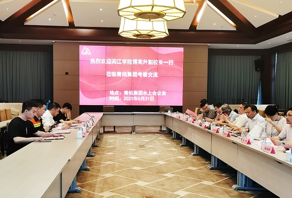 在水上会议室召开的交流会上,钟盛江介绍了青拓集团13年的发展历程、合作高校学生在企实习状况和校企合作培训情况。他表示:企业在不锈钢、新能源等方面有很多规划,希望与院校建立实训基地,为企业提供多方面人才,同时加强各专业对接,循序渐进地推进校企合作工作,有更多的新成果和新项目支持宁德地区经济建设。