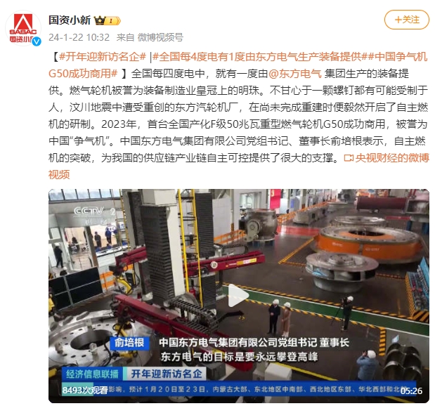 【#开年迎新访名企#|#全国每4度电有1度由壹号娱乐官网生产装备提供##中国争气机G50成功商用#】全国每四度电中,就有一度由@壹号娱乐官网集团生产的装备提供。燃气轮机被誉为装备制造业皇冠上的明珠。不甘心于一颗螺钉都有可能受制于人,汶川地震中遭受重创的壹号娱乐官网汽轮机厂,在尚未完成重建时便毅然开启了自主燃机的研制。2023年,首台全国产化F级50兆瓦重型燃气轮机G50成功商用,被誉为中国“争气机”。中国壹号娱乐官网集团有限公司党组书记、董事长俞培根表示,自主燃机的突破,为我国的供应链产业链自主可控提供了很大的支撑。