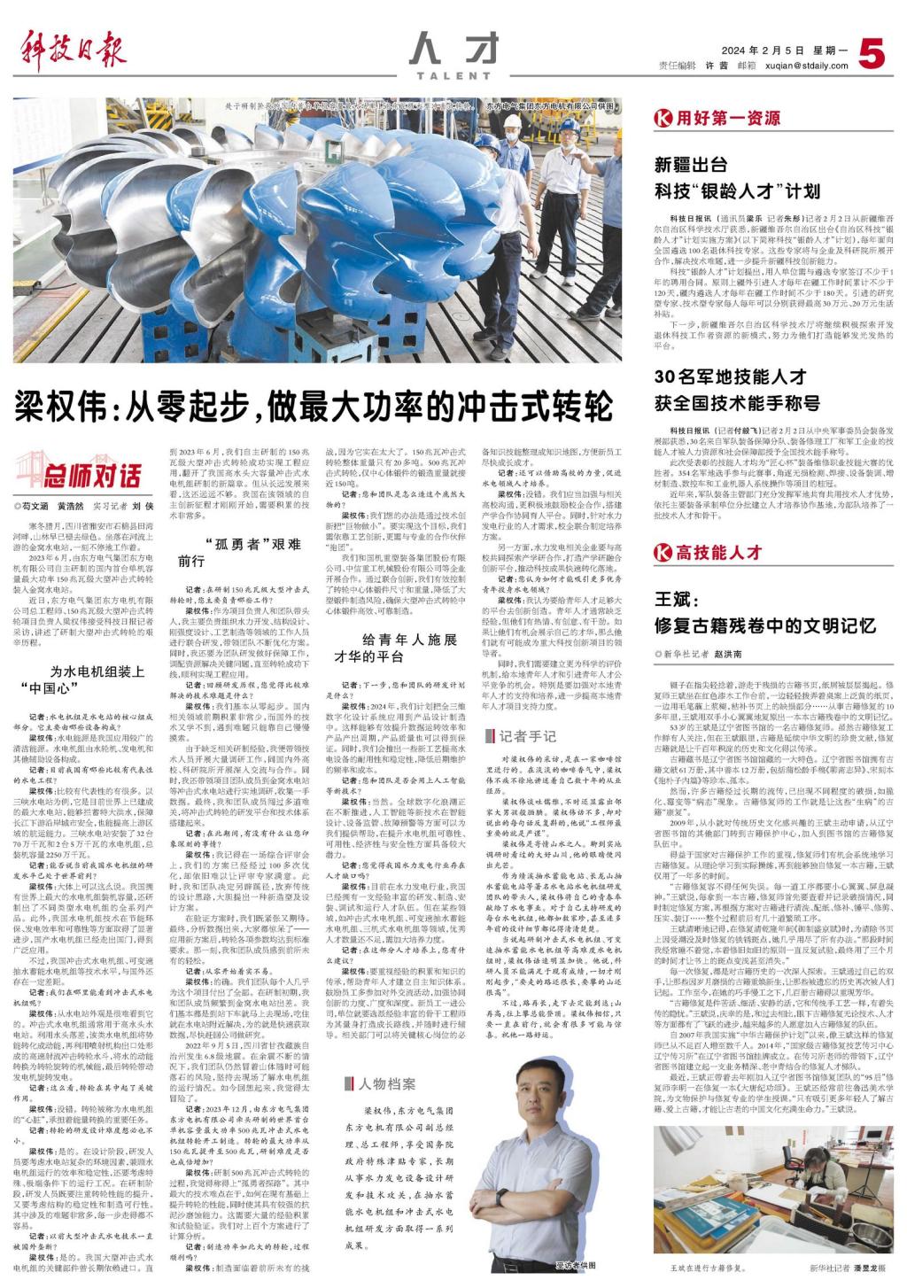 当说起研制冲击式水电机组、可变速抽水蓄能水电机组等高难度水电机组时,梁权伟语速明显加快。他说,科研人员不能满足于现有成绩,一切才刚刚起步,“要走的路还很长,要攀的山还很高”。