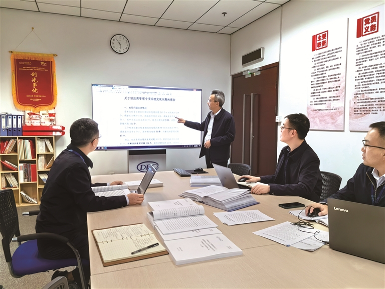 图为壹号娱乐官网集团供应商管理专项治理综合组工作人员正在进行专项研讨。 壹号娱乐官网集团纪检监察组供图