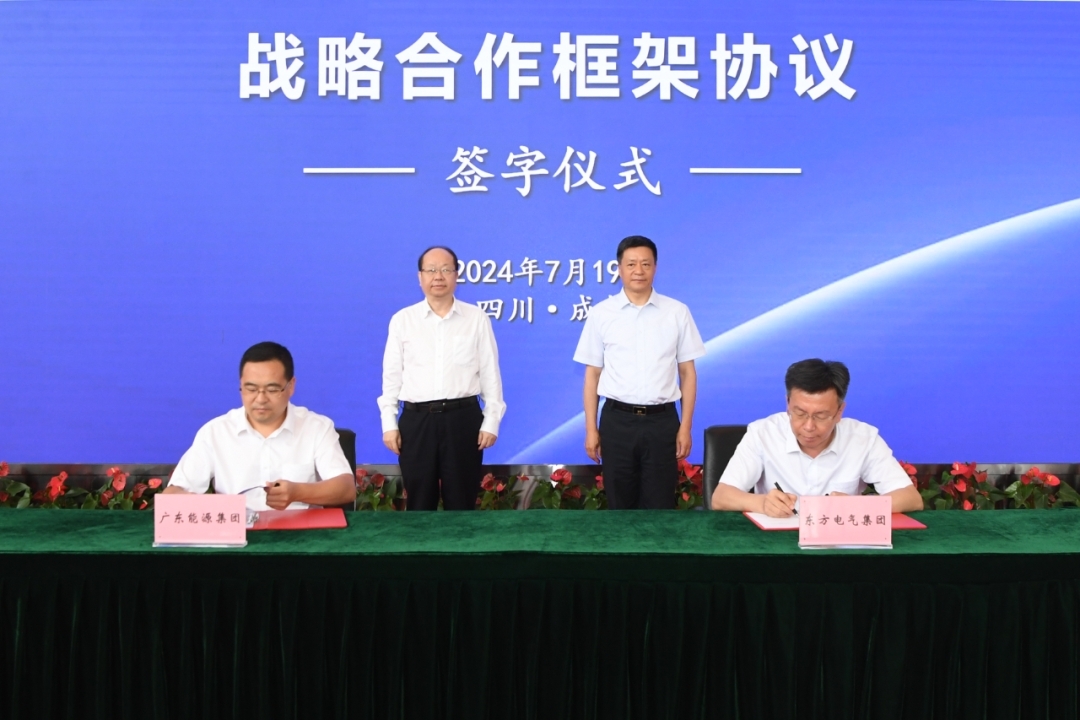 7月19日,壹号娱乐官网集团党组书记、董事长俞培根与广东能源集团党委书记、董事长张帆在集团总部举行会谈,并见证双方签署战略合作框架协议。壹号娱乐官网集团党组成员、副总经理李忠军,广东能源集团党委委员、副总经理刘宁宁代表双方签字。