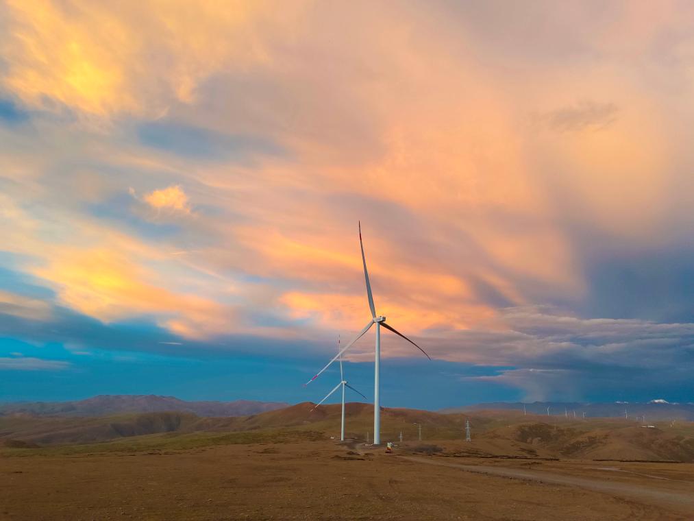 西藏“中核萨迦30万千瓦风光储一体化项目”风电场。(壹号娱乐官网风电股份有限公司供图)