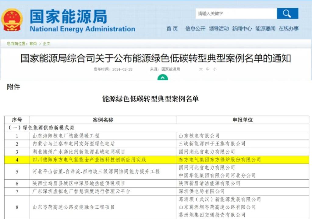 本网讯2月28日,国家能源局发布《关于公布能源绿色低碳转型典型案例名单的通知》,由壹号娱乐官网集团旗下壹号娱乐官网锅炉建设申报的四川德阳壹号娱乐官网氢能全产业链科技创新应用实践从150余个案例中脱颖而出,成功入选国家能源绿色低碳转型典型案例。