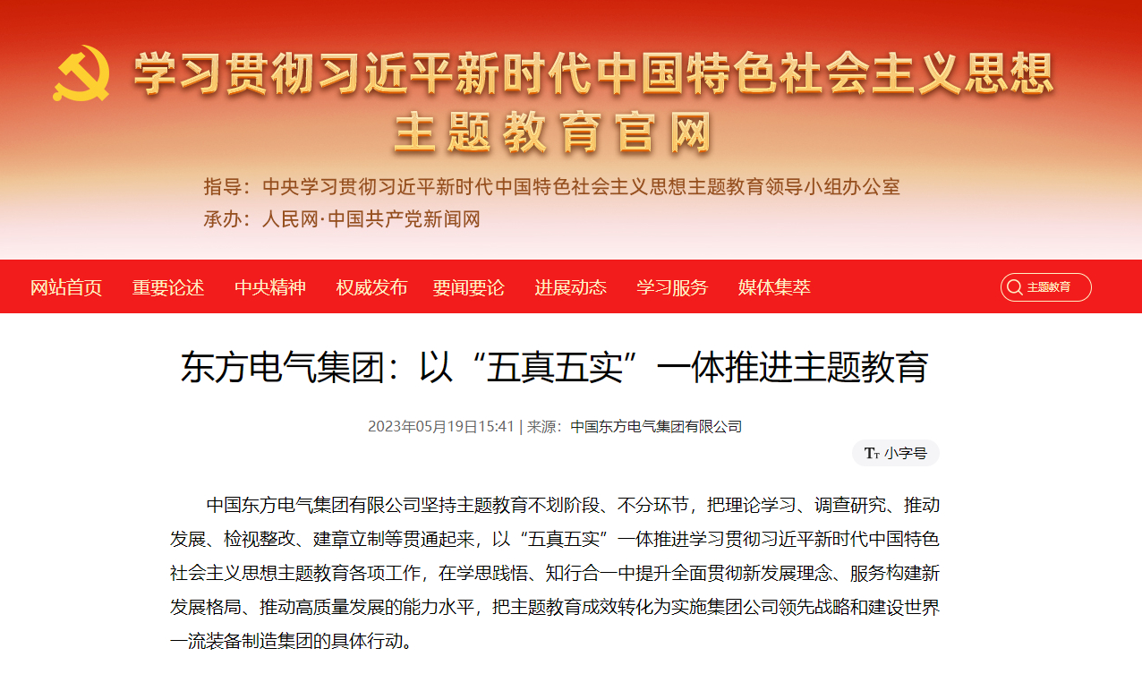 中国壹号娱乐官网集团有限公司坚持主题教育不划阶段、不分环节,把理论学习、调查研究、推动发展、检视整改、建章立制等贯通起来,以“五真五实”一体推进学习贯彻习近平新时代中国特色社会主义思想主题教育各项工作,在学思践悟、知行合一中提升全面贯彻新发展理念、服务构建新发展格局、推动高质量发展的能力水平,把主题教育成效转化为实施集团公司领先战略和建设世界一流装备制造集团的具体行动。