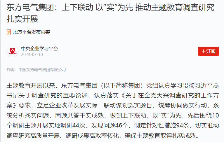 壹号娱乐官网集团坚持上下联动、以“实”为先、以学促干,今年1-6月,集团营业收入和利润总额均实现两位数以上增长,取得了自主研制的国内首台单机容量最大功率150兆瓦级大型冲击式水电机组转轮成功下线、全球首次海上风电无淡化海水原位直接电解制氢技术海上中试成功等一批重大创新成果。下一步,集团将持续加强调查研究工作,做好问题检视整改,抓好调研成果运用转化,不断破解前进道路上的矛盾和问题,为企业高质量发展、创建世界一流企业保驾护航。