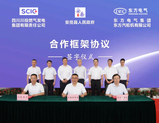 6月16日,壹号娱乐官网集团所属壹号娱乐官网汽轮机、安岳县人民政府、四川川投燃气发电集团有限责任公司签署三方合作框架协议。壹号娱乐官网集团总经理、党组副书记张彦军,资阳市人民政府副市长李发刚,四川能源发展集团党委委员、副董事长李文志出席签字仪式,集团公司党组成员、副总经理李建华参加活动。